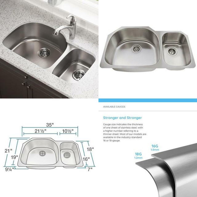Made with durable T-304 stainless steel, this undermount sink will stand up to constant use, and easily handles your toughest kitchen tasks. Commercial grade satin finish makes cleanup as easy as wiping the surface with a damp cloth. Since thicker steel means a stronger, more dent-resistant sink, this model is made from 18-gauge stainless steel. ZUHNE 32-Inch Stainless Steel Undermount Kitchen Sink Double Bowl 16 Gauge (50/50 Equal) Get free shipping on qualified Stainless Steel, Double Bowl, Black Undermount Kitchen Sinks or Buy Online Pick Up in Store today in the Kitchen Department. Store Finder; Truck & Tool Rental ...